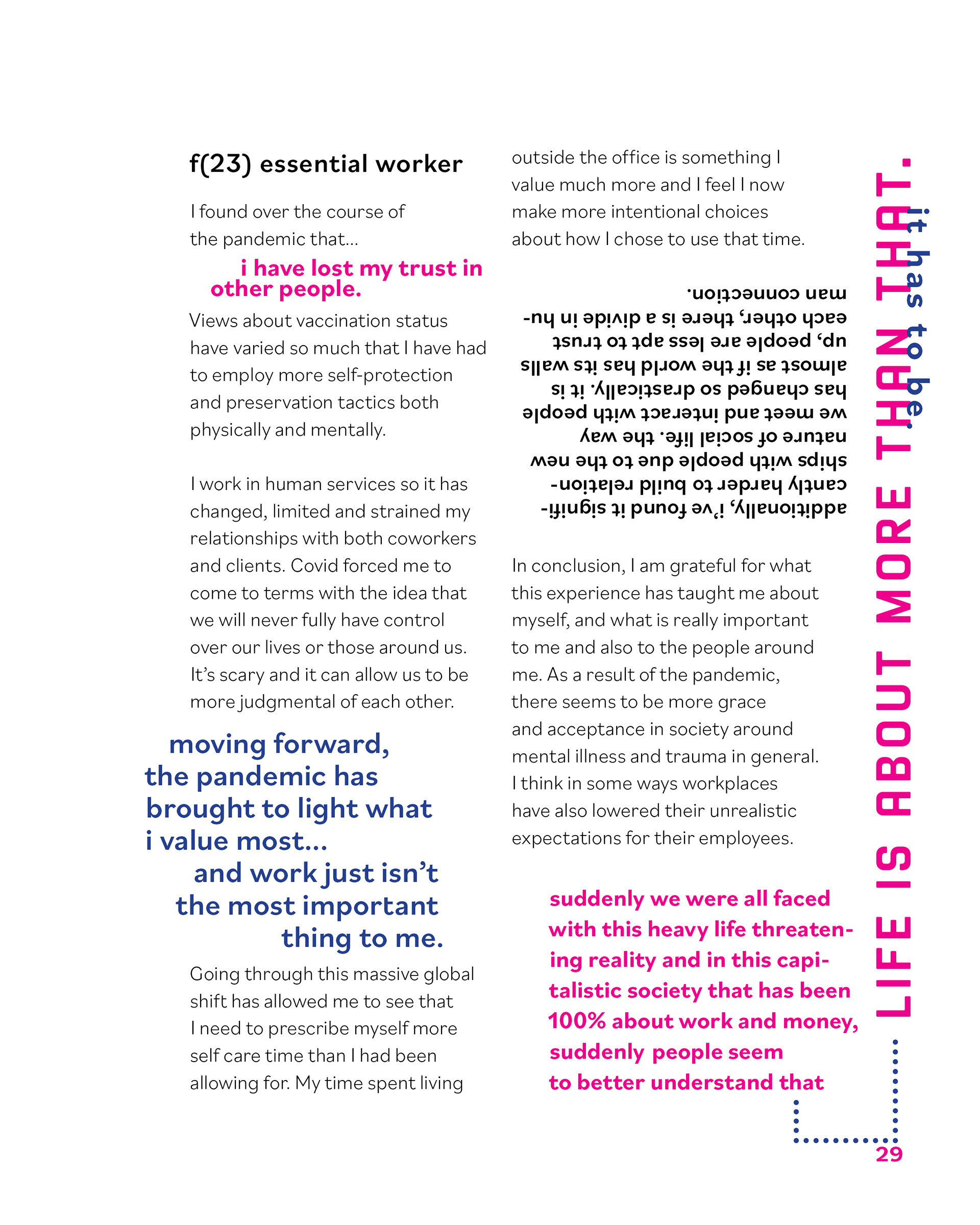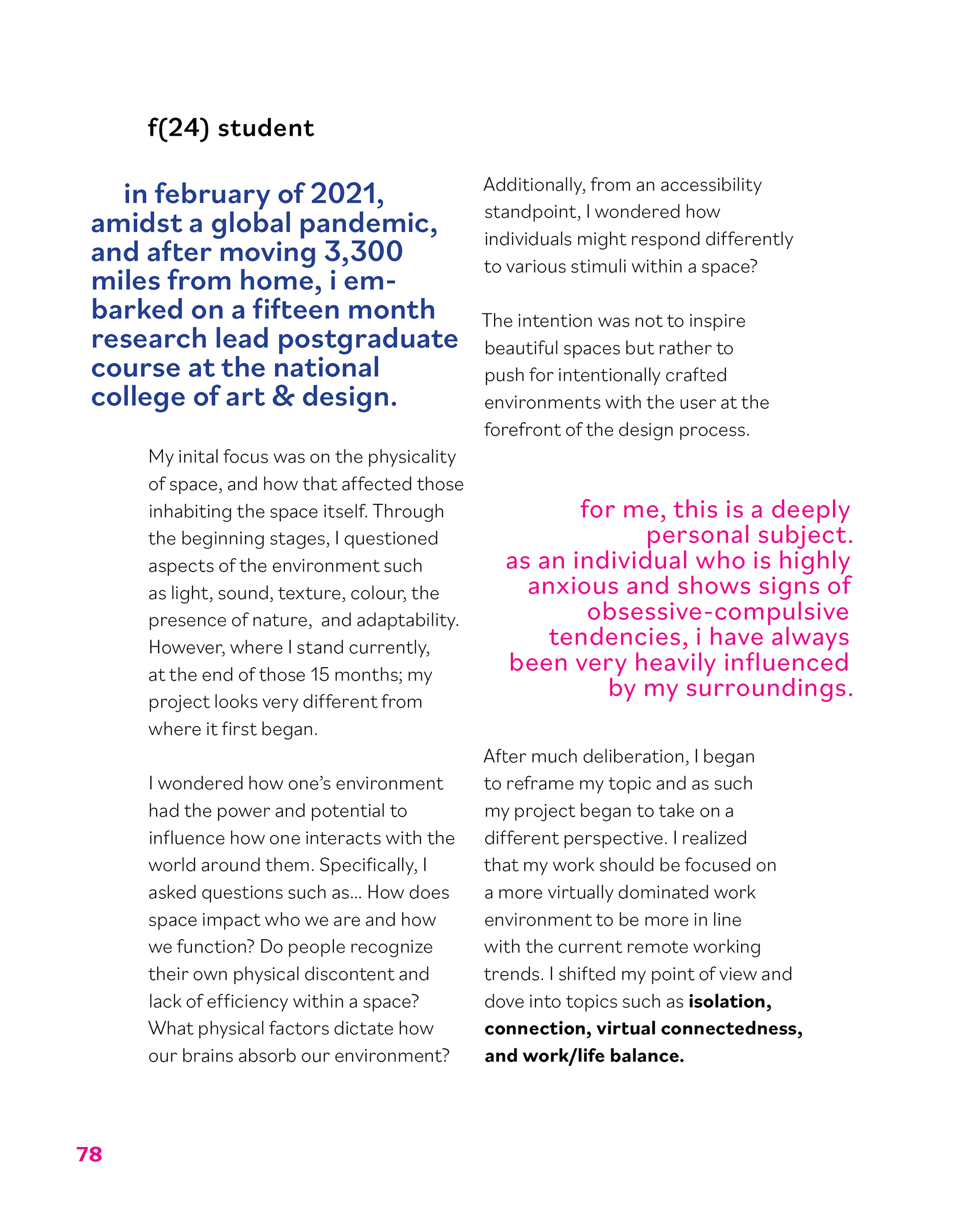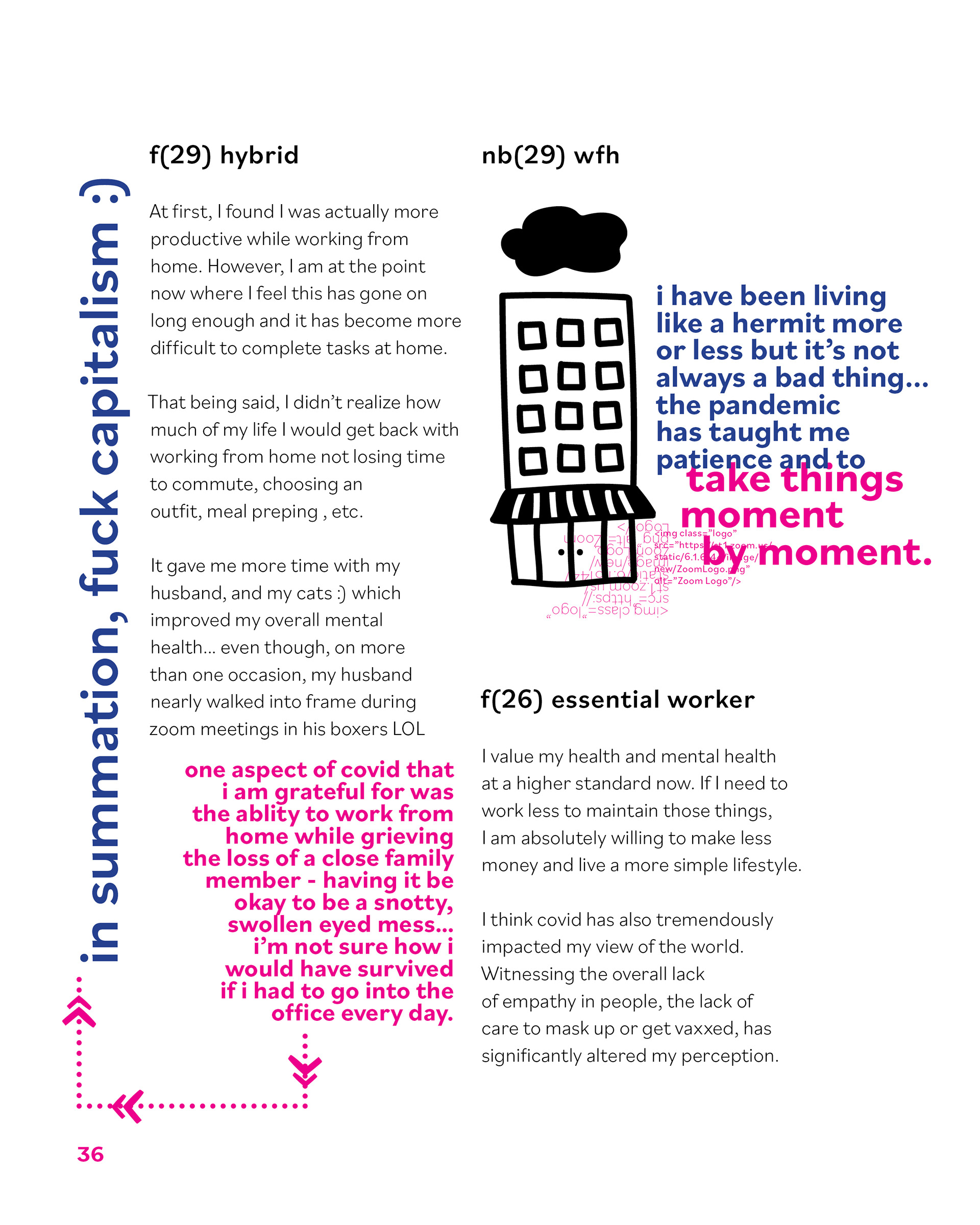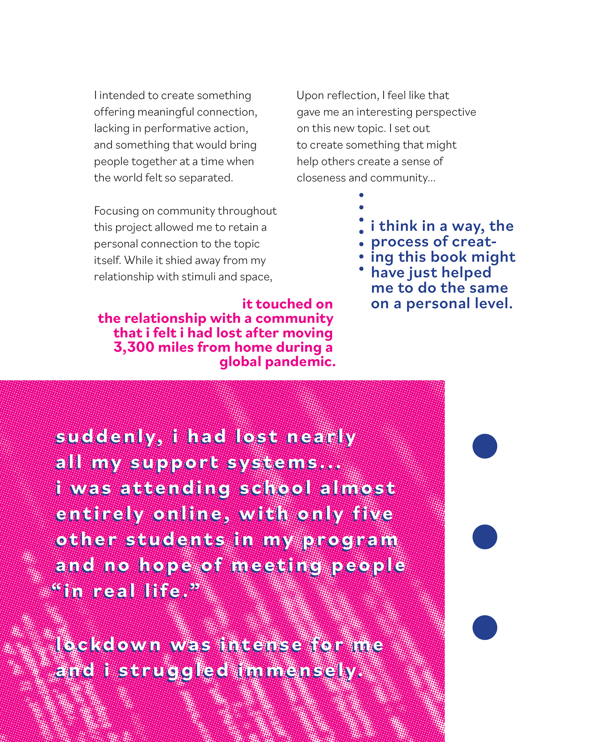 reflecting on the balance between living and working. studying the intricacies between authentic connection and community. curating stories to be told and perspectives to be reflected upon. ncad master's thesis.